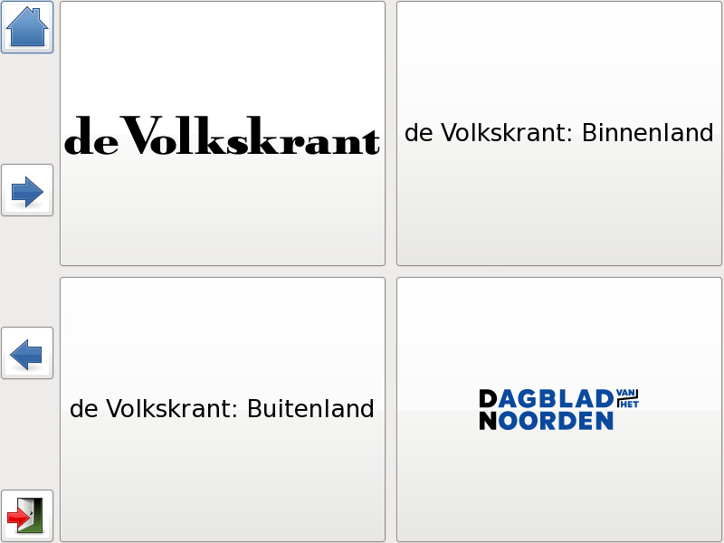 Kranten lezenMet de RSS lezer kunnen de headlines van enkele kranten worden gelezen.
